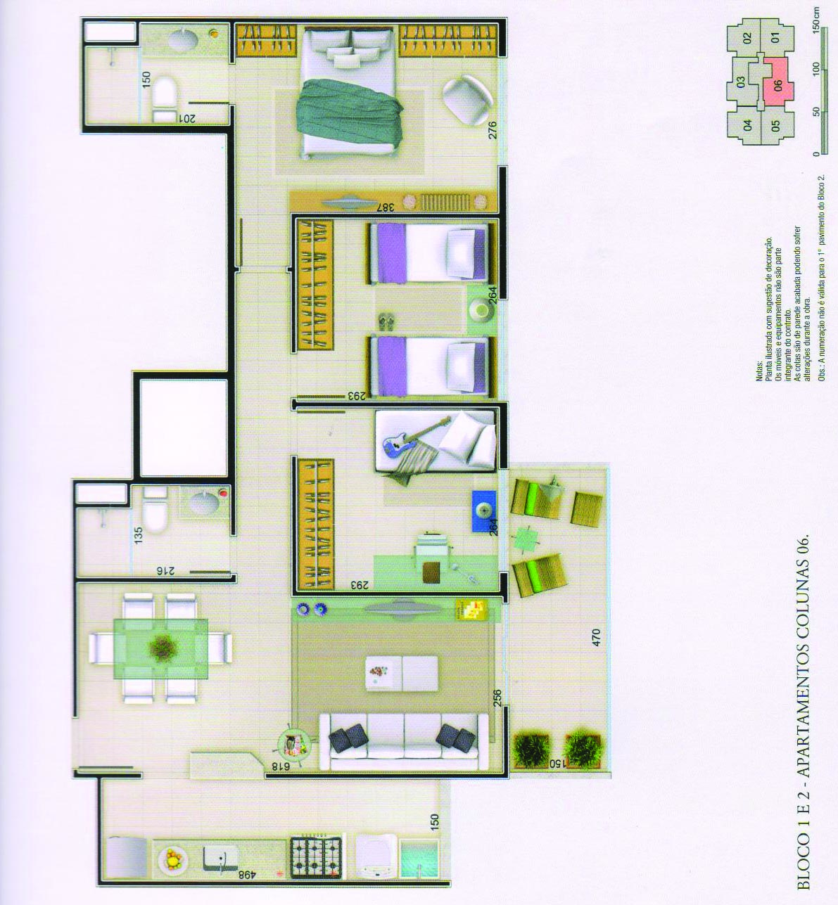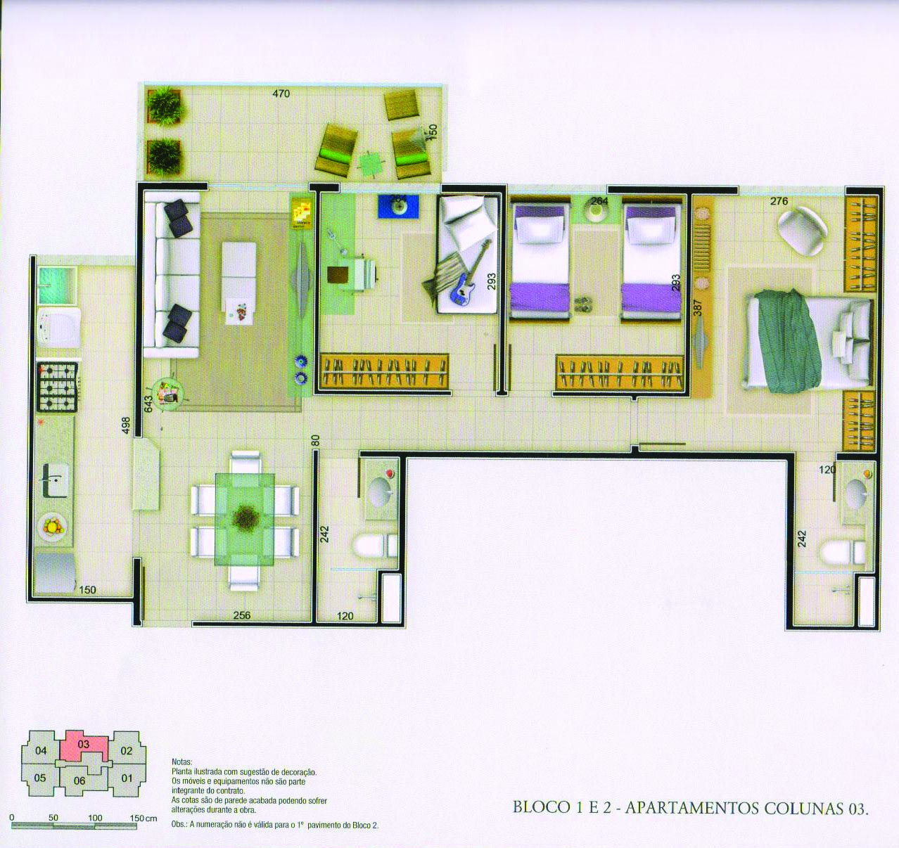 - Apartamentos de 3 dormitórios entre 75,03 e 156,49 m2.